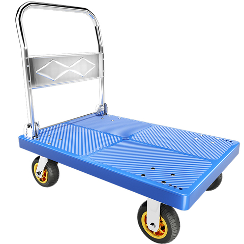 70*50CM kleiner Edelstahl-Plattform-Handwagen mit leisem Rad und faltbarem Handlauf